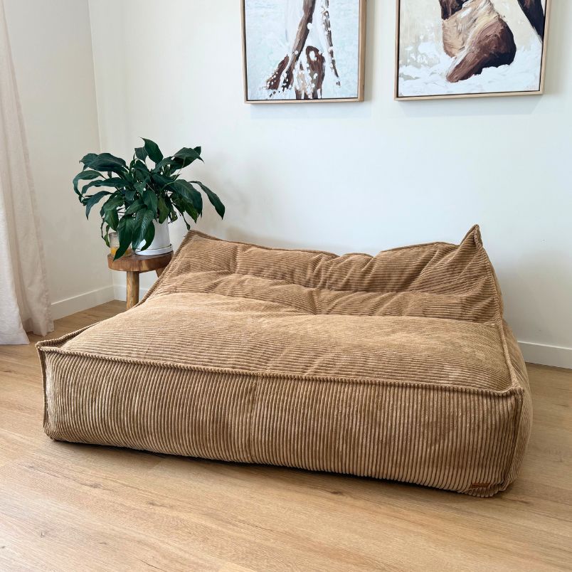 We ordered 2 of the Mooi Boss Bean bags in the Boss Tan colour-way for a client. The products are so beautiful, and so cleverly designed when it comes to filling them. We found it super easy and functional filling 3 seperate bags for the filling, instead of 1 large one. They also look great in the space.